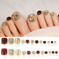 100pcs Boxed Press-On Toe Nails – Wine Red Solid Color