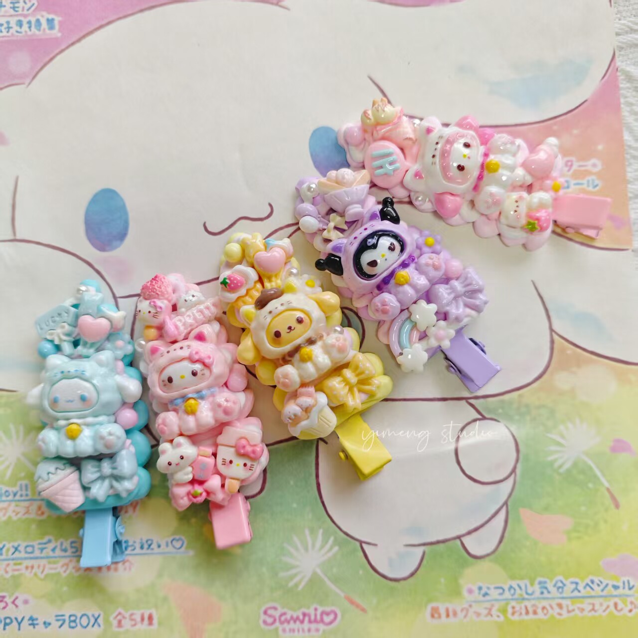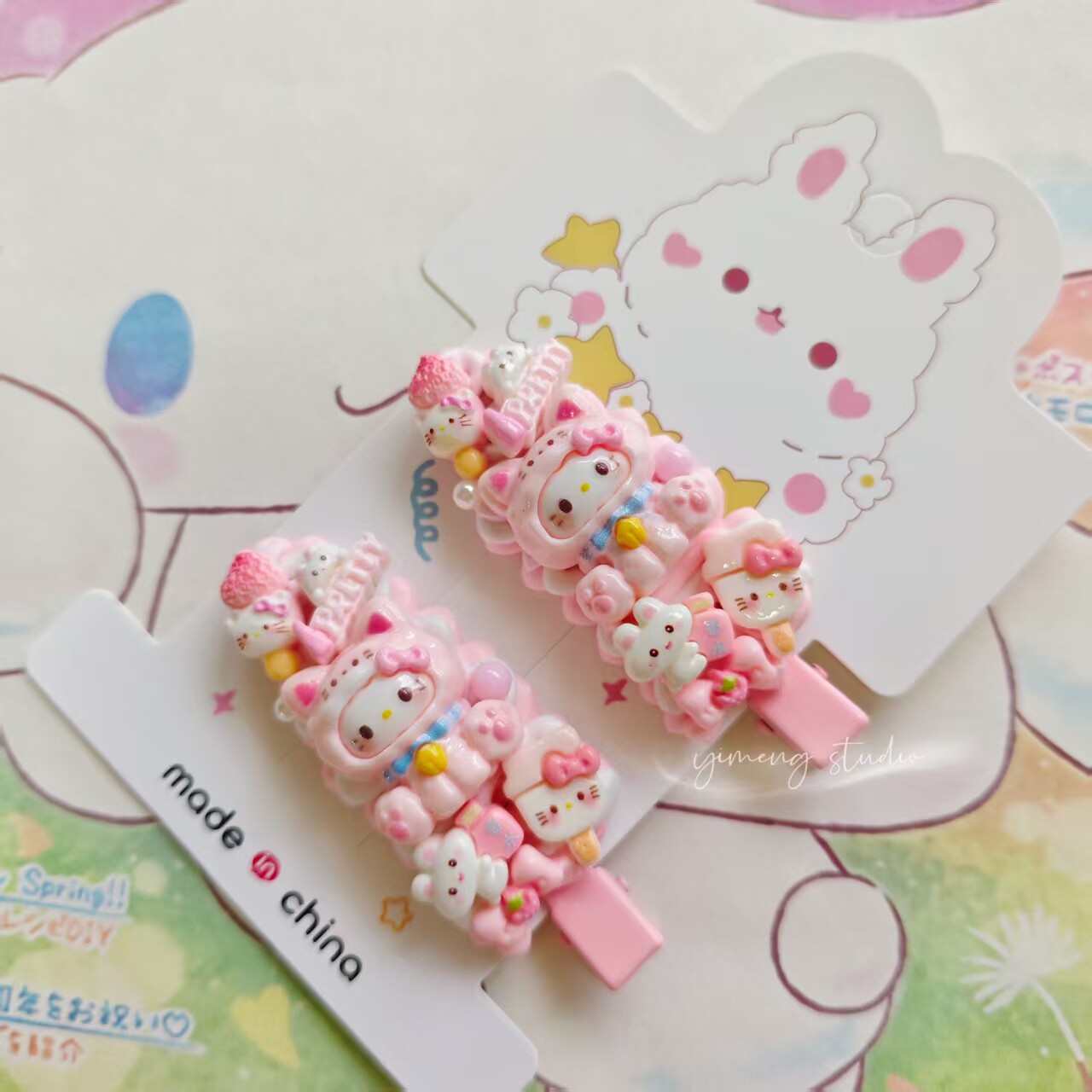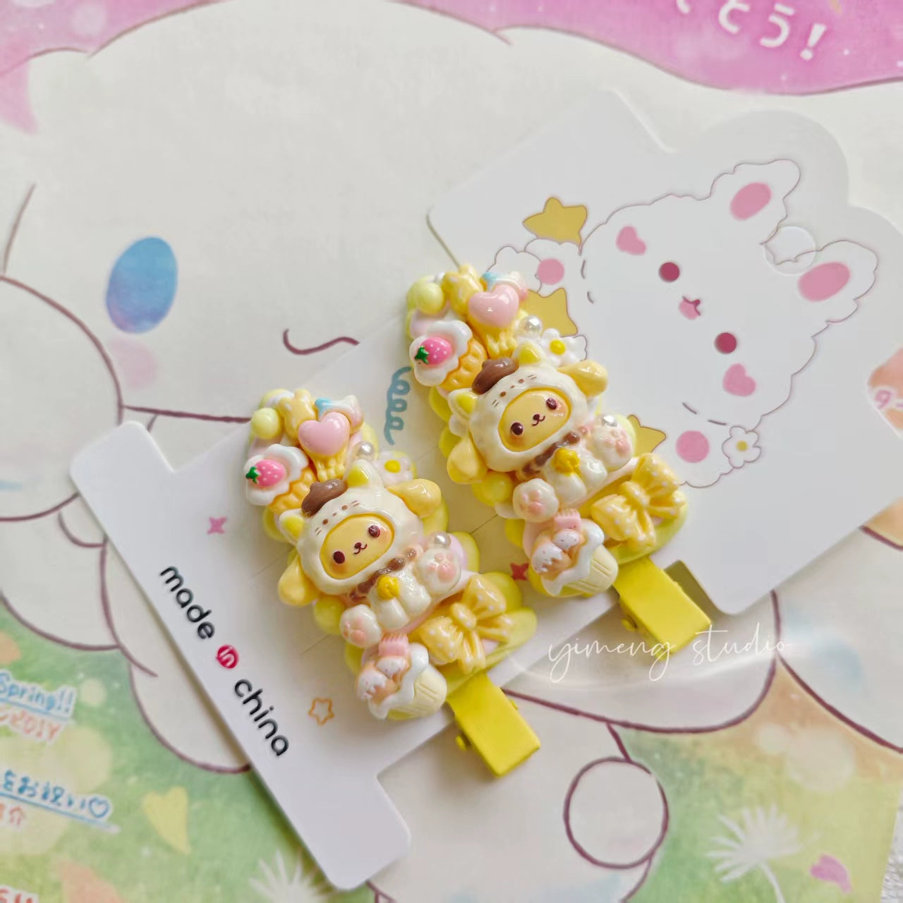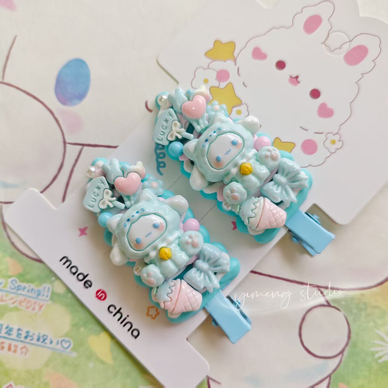 An original handmade DIY hair clip with cute cartoon details.