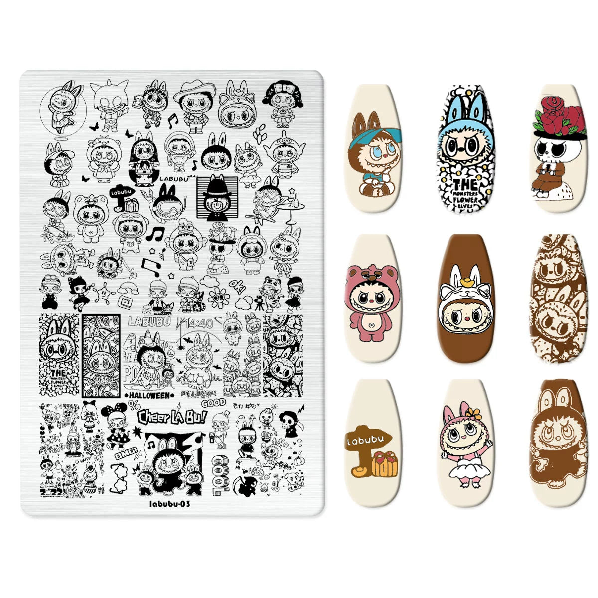 Labubu Nail Art Stamping Plate – Cute Monster Design Manicure Transfer Tool